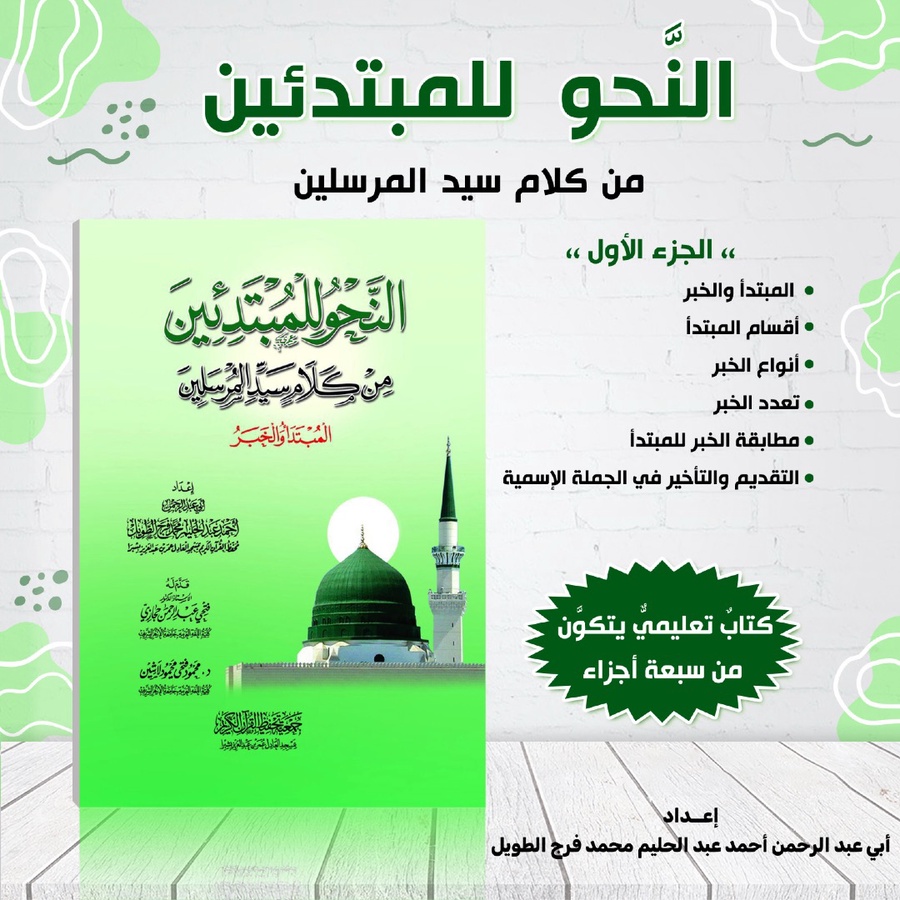 إنه جزء تأسيسي يجمع بين وضوح القاعدة و ضياء السنة، ليبدأ المتعلّم رحلته في النحو من أمتع الأبواب وأهمها، على منهجٍ يجمع بين التربية واللغة، والفهم والتطبيق.